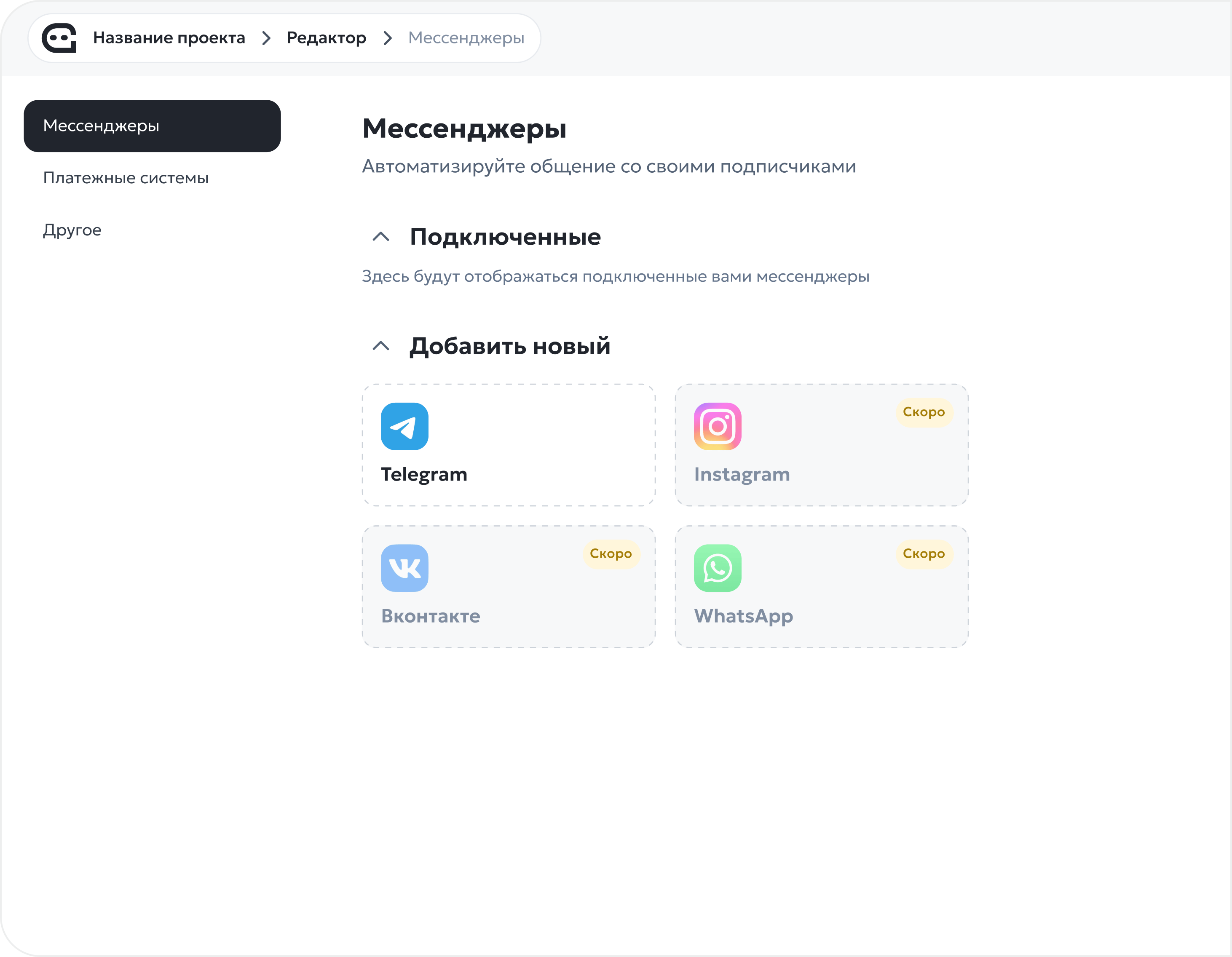 Принимайте платежи прямо в чате и подключайте сервисы, чтобы сделать взаимодействие удобнее.