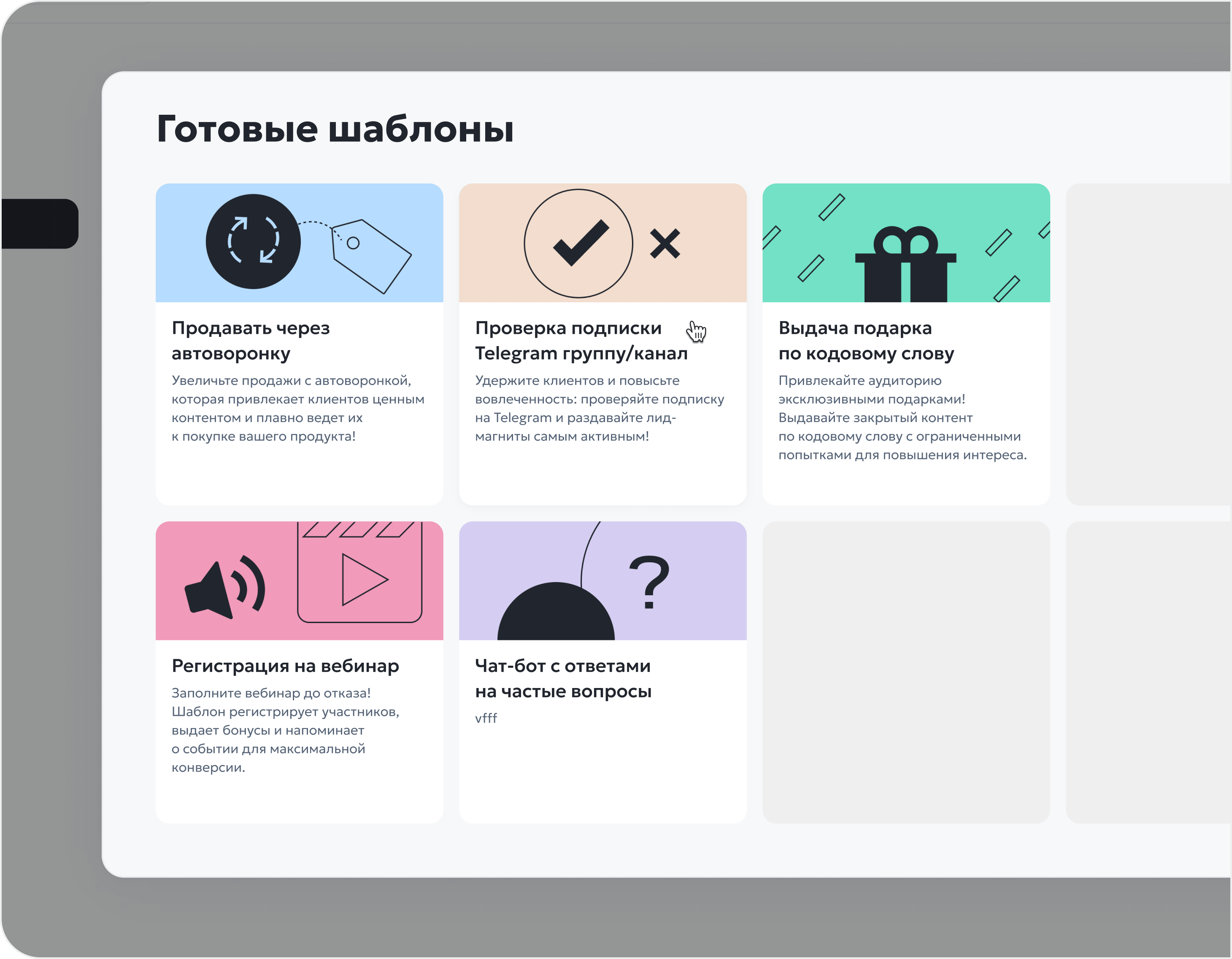 Экономьте время с готовыми шаблонами для быстрого старта и усиления продаж.